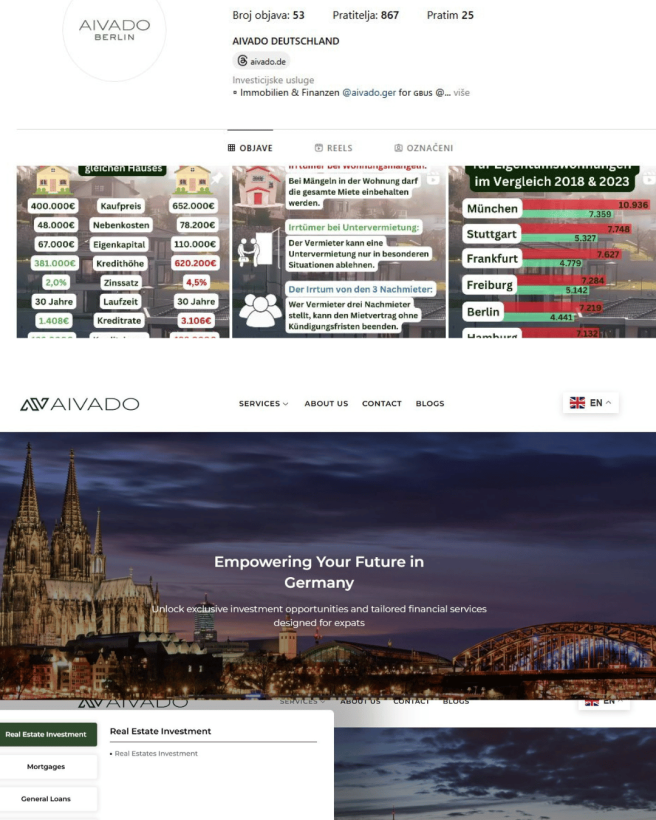 Erstellung von Website, SEO-Optimierung, Content-Management, Social-Media-Management & Ads sowie regelmäßige Analitytics und Report.