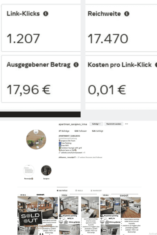 Content-Erstellung, Google My Business Profil und Auswertung der Zahlen für den ersten Monat.