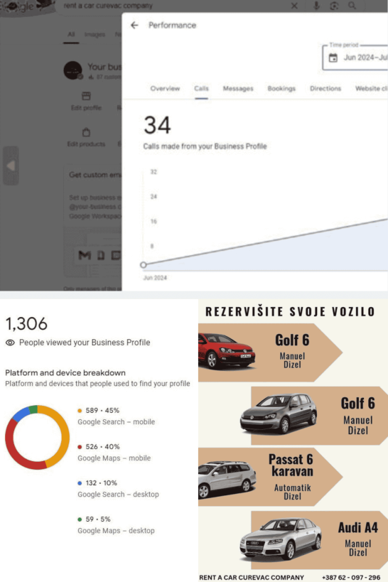 Content-Erstellung, Google My Business Profil und Auswertung der Zahlen für den ersten Monat.