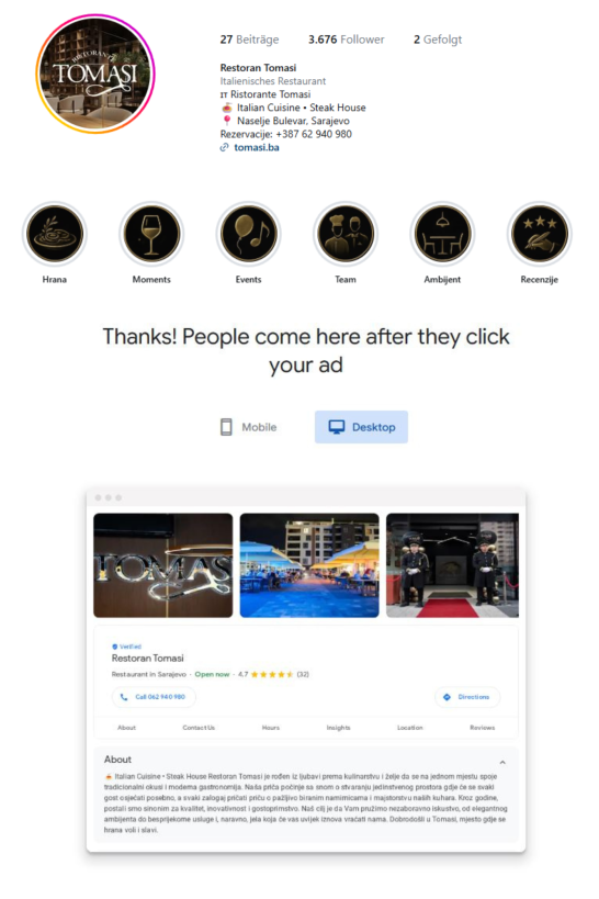 Erstellung von Website, SEO-Optimierung, Content-Management, Social-Media-Management & Ads sowie regelmäßige Analitytics und Report.